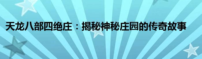 天龙八部四绝庄:揭秘神秘庄园的传奇故事
