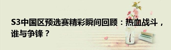 S3中国区预选赛精彩瞬间回顾:热血战斗,谁与争锋?