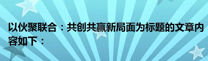 以伙聚联合:共创共赢新局面为标题的文章内容如下: