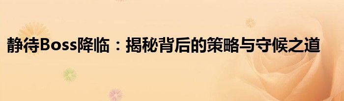 在这篇文章中,我们将探讨关于“守候boss”的话题,深入分析背后所需要的关键策略以及守候的智慧。面对一个强劲的boss,不仅需要出色的实力,更需要策略和耐心的守候。让我们一起来看看如何成为最佳的守护者吧!