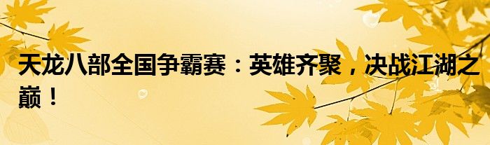天龙八部全国争霸赛:英雄齐聚,决战江湖之巅!
