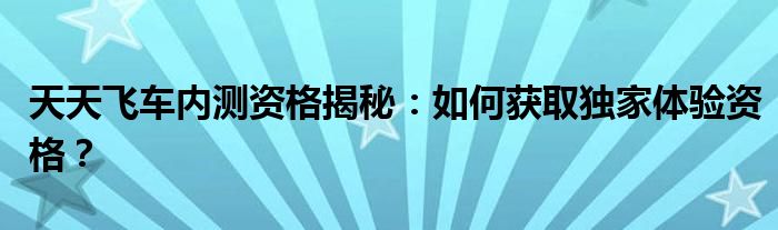 天天飞车内测资格揭秘:如何获取独家体验资格?