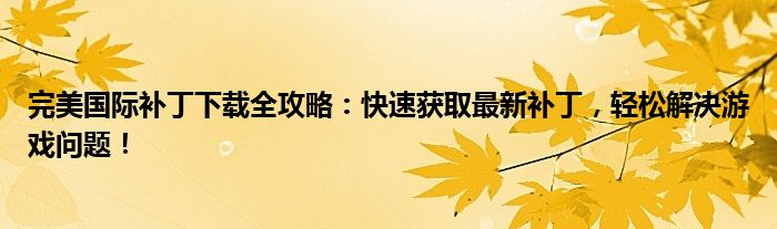 完美国际补丁下载全攻略:快速获取最新补丁,轻松解决游戏问题!