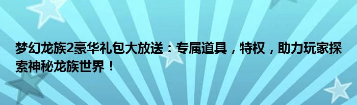 梦幻龙族2豪华礼包大放送:专属道具,特权,助力玩家探索神秘龙族世界!