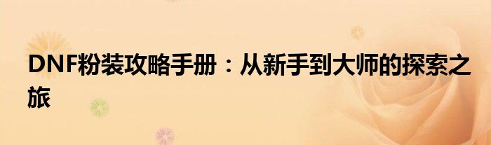 DNF粉装攻略手册:从新手到大师的探索之旅