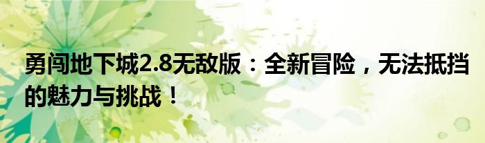 在这个充满刺激和冒险的世界里,即将为你带来全新的“勇闯地下城2.8无敌版”!这是一个热血沸腾、英勇无敌的冒险游戏,玩家将会深入地下城探险,与邪恶势力展开激战,挑战自己的极限!本文将为你详细介绍这款游戏的特点和亮点。