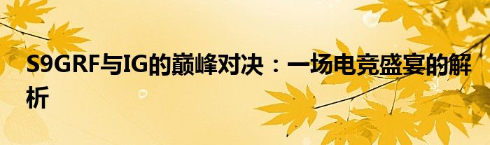 S9GRF与IG的巅峰对决:一场电竞盛宴的解析