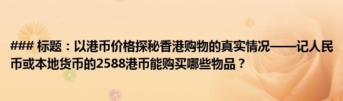 ### 标题:以港币价格探秘香港购物的真实情况——记人民币或本地货币的2588港币能购买哪些物品?