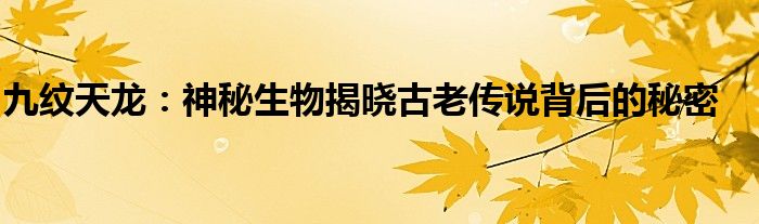 九纹天龙:神秘生物揭晓古老传说背后的秘密
