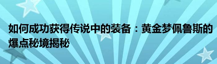 如何成功获得传说中的装备:黄金梦佩鲁斯的爆点秘境揭秘
