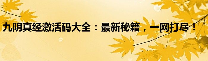 九阴真经激活码大全:最新秘籍,一网打尽!