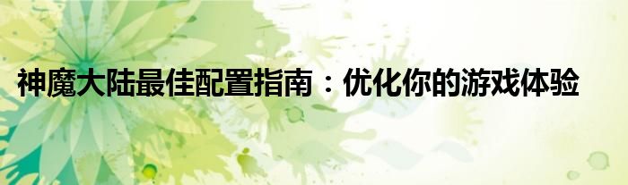 通过本文的介绍,玩家可以根据自身需求和预算进行神魔大陆的最佳配置选择。合理配置硬件和软件环境,将有助于提高游戏体验,让玩家充分享受神魔大陆带来的乐趣。希望本文能对广大玩家有所帮助。