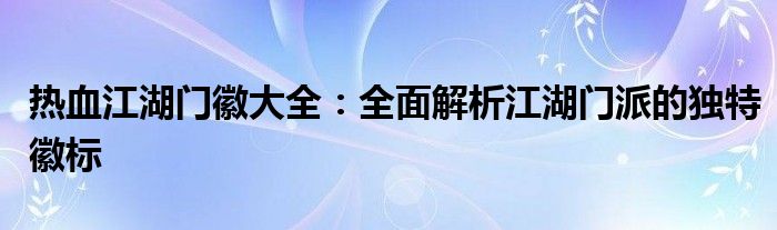 本文将为大家带来一份详尽的《热血江湖门徽大全》,我们将全面解析热血江湖中各江湖门派的独特徽标,带领大家领略江湖中的视觉盛宴。在这篇文章中,您将看到各式各样的门徽图案、它们所代表的含义以及背后的故事。