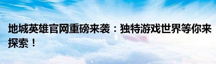 地城英雄官网重磅来袭:独特游戏世界等你来探索!