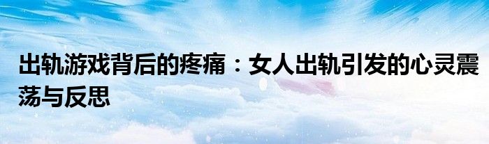 出轨游戏背后的疼痛:女人出轨引发的心灵震荡与反思