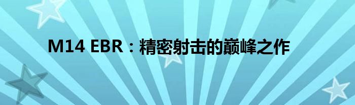M14 EBR以其卓越的性能、精准的射击能力和广泛的应用领域,成为了精密射击的巅峰之作。无论是在军事、狩猎还是竞技射击领域,M14 EBR都能展现出其独特的优势和价值。