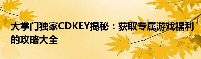 大掌门独家CDKEY揭秘:获取专属游戏福利的攻略大全