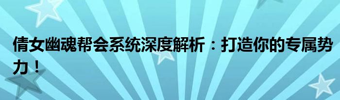 本文将为大家带来《倩女幽魂》游戏中帮会系统的深度解析,帮助大家了解如何打造自己的专属势力,更好地体验游戏乐趣。