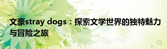 文豪stray dogs:探索文学世界的独特魅力与冒险之旅