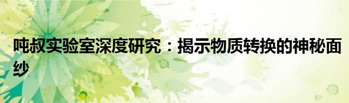 吨叔实验室深度研究:揭示物质转换的神秘面纱