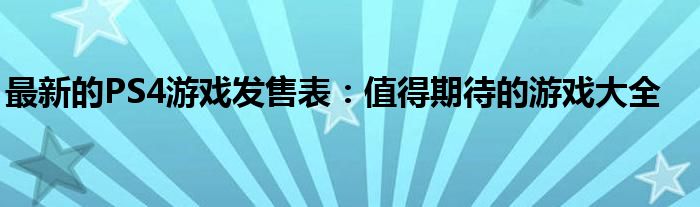 随着科技的发展,PlayStation 4(PS4)的游戏越来越丰富多样,满足了各类玩家的需求。以下是最新PS4游戏发售表,带你领略即将上市的游戏盛宴。