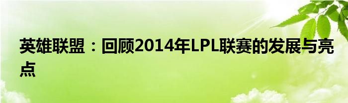 英雄联盟:回顾2014年LPL联赛的发展与亮点