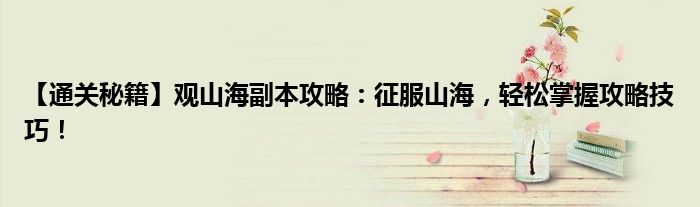 【通关秘籍】观山海副本攻略:征服山海,轻松掌握攻略技巧!