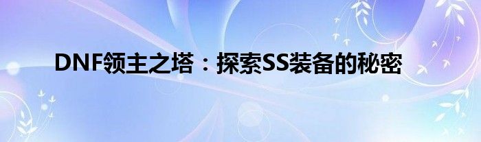 本文将探讨在DNF(地下城与勇士)游戏中领主之塔内获得的SS装备的秘密。我们将从装备的获取方式、属性特点、适用角色以及强化方法等方面展开详细的讨论。