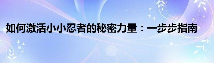 要激活小小忍者的力量,需要寻找特定的激活方法。这可能涉及到一系列的挑战、任务或者特殊的仪式。这些方法可能是已知的,也可能是需要通过探索与发现来找到的。你可以查阅相关的忍者手册、寻找资深忍者的指导,或者与其他忍者社区进行交流。