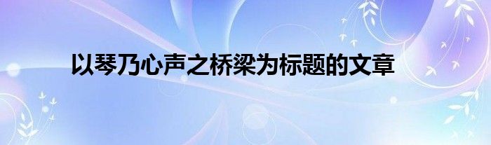 总之,琴乃心声之桥梁。它不仅能够传递音乐的美妙,更能够传递人们的情感和思想。让我们用琴声来表达自己的内心,享受音乐带来的快乐和满足。