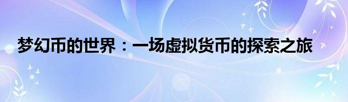 本文旨在让读者全面了解梦幻币的世界,探讨其未来发展前景。让我们共同期待梦幻币在未来带来的更多惊喜和机遇。