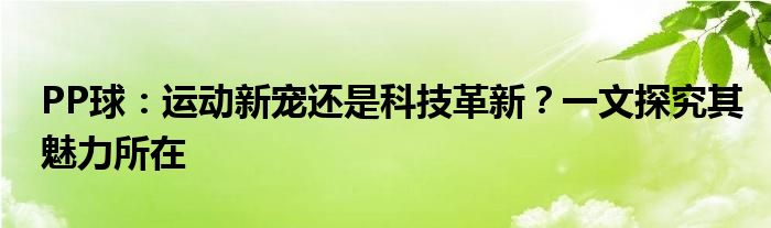 PP球:运动新宠还是科技革新?一文探究其魅力所在