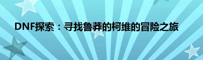 DNF探索:寻找鲁莽的柯维的冒险之旅