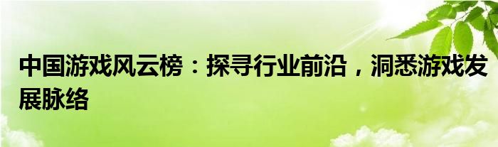 中国游戏风云榜:探寻行业前沿,洞悉游戏发展脉络