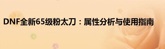 本文旨在帮助DNF玩家更好地了解和运用65级粉太刀,通过详细的属性分析、适用角色、搭配技能以及获取方式等方面的介绍,为玩家提供全面的使用指南。