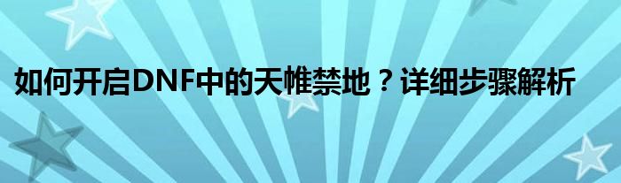 如何开启DNF中的天帷禁地?详细步骤解析