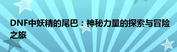 DNF中妖精的尾巴:神秘力量的探索与冒险之旅