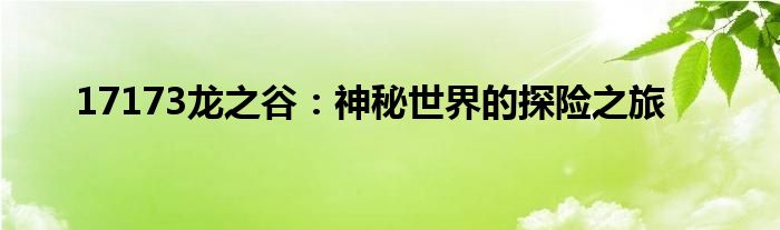 17173龙之谷:神秘世界的探险之旅