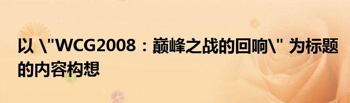以 "WCG2008:巅峰之战的回响" 为标题的内容构想