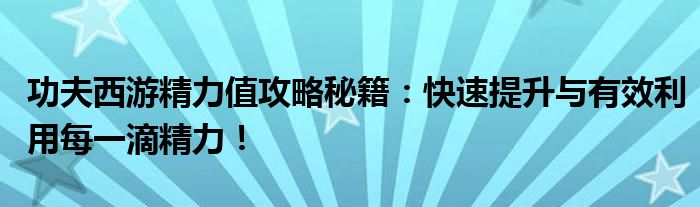 《功夫西游》的精力值系统是游戏中不可或缺的一部分,玩家需掌握其规律与技巧。通过本文的攻略秘籍,相信各位玩家已经对如何快速提升与有效利用精力值有了更深刻的理解。希望各位玩家在游戏中能够轻松提升角色实力,享受更多的游戏乐趣!