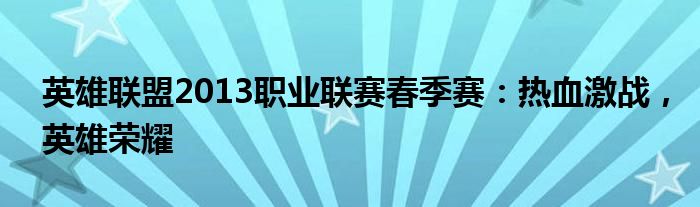 英雄联盟2013职业联赛春季赛:热血激战,英雄荣耀
