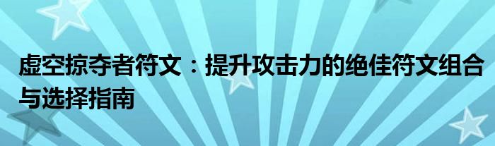 虚空掠夺者符文:提升攻击力的绝佳符文组合与选择指南