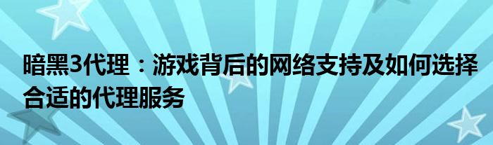 暗黑3代理:游戏背后的网络支持及如何选择合适的代理服务