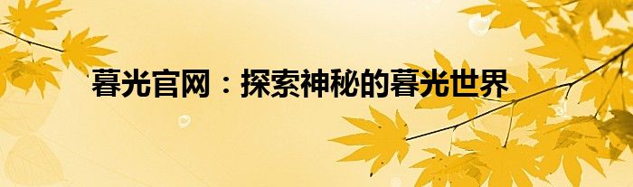 暮光官网:探索神秘的暮光世界