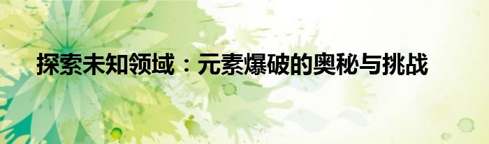 探索未知领域:元素爆破的奥秘与挑战