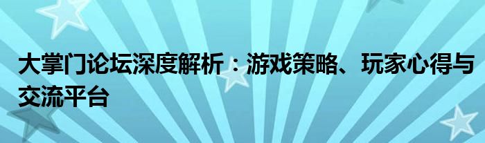 大掌门论坛深度解析:游戏策略、玩家心得与交流平台