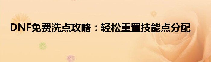 在《地下城与勇士》(DNF)这款深受玩家喜爱的游戏中,角色的技能点分配是非常重要的一部分。有时候,随着游戏的深入和角色的成长,玩家可能会发现自己的技能点分配并不理想,需要进行调整。这时,免费洗点成为了一个玩家们关注的焦点。本文将为大家介绍DNF中的免费洗点攻略,帮助玩家轻松重置技能点分配。