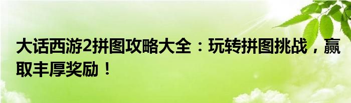本文将为大家带来大话西游2拼图攻略,帮助大家轻松玩转拼图挑战,赢取丰厚奖励。我们将从以下几个方面详细介绍拼图玩法及技巧。