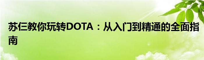 苏仨教你玩转DOTA:从入门到精通的全面指南