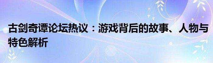 古剑奇谭论坛热议:游戏背后的故事、人物与特色解析